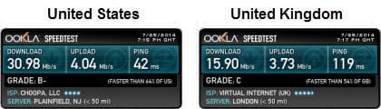 用户连接到他们在美国的一台服务器。